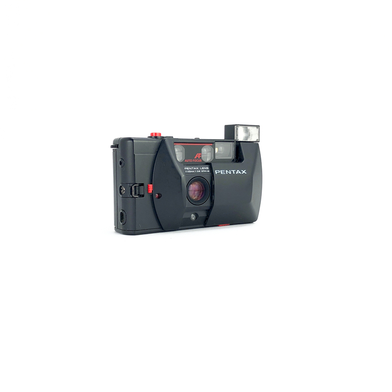 A 35mm point and shoot camera with autowind and rewind, a self timer, a built in pop up flash and a 35mm ƒ.2.8 lens. This one will come with it’s original strap.