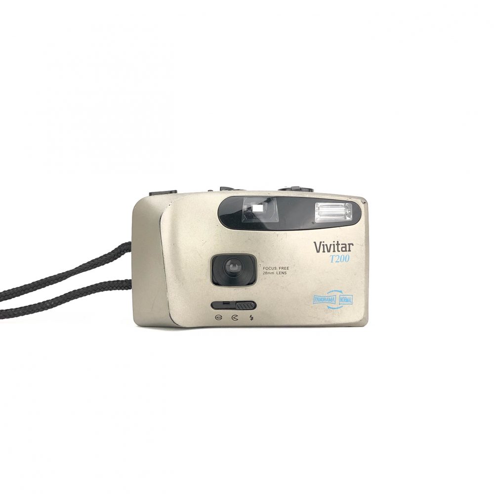 The Vivitar T200 Panorama is a really simple little point and shoot which can be switched from a standard 35mm frame to a panoramic one using the switch on the top of the camera. The flash is controlled by the switch below the lens.