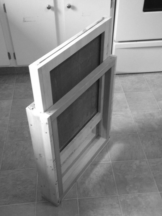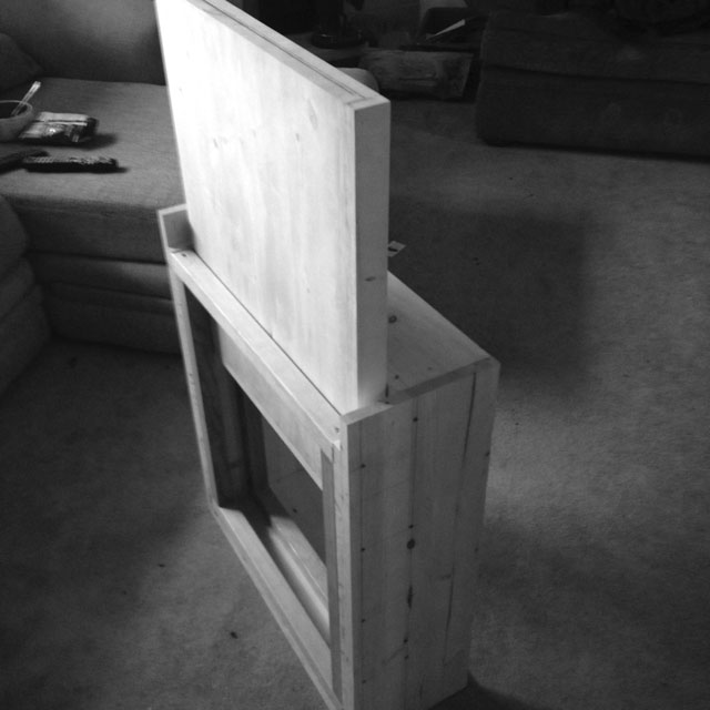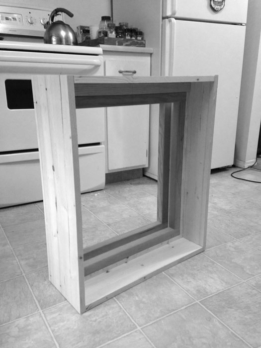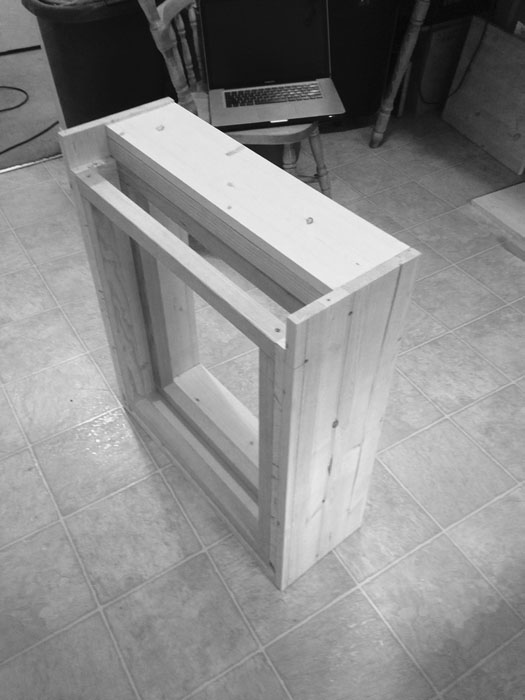 Now that the film back is complete, I was able to take all my necessary measurement from it, and start construction on the actual camera. Simply, I needed to start construction of building a light tight box that could hold a film back and ground glass back, and hold a lens to project the images. Here I started building the back of the camera. I needed to build a box that would allow me to slide in and out my film holder, and the ground glass back – once that was built, I could proceed to the next steps.