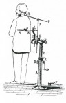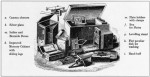 2. The operator places the sensitized plate into a camera placed on a high shelf. When the sitter is ready the operator removes the camera cover and times the required exposure with a watch.