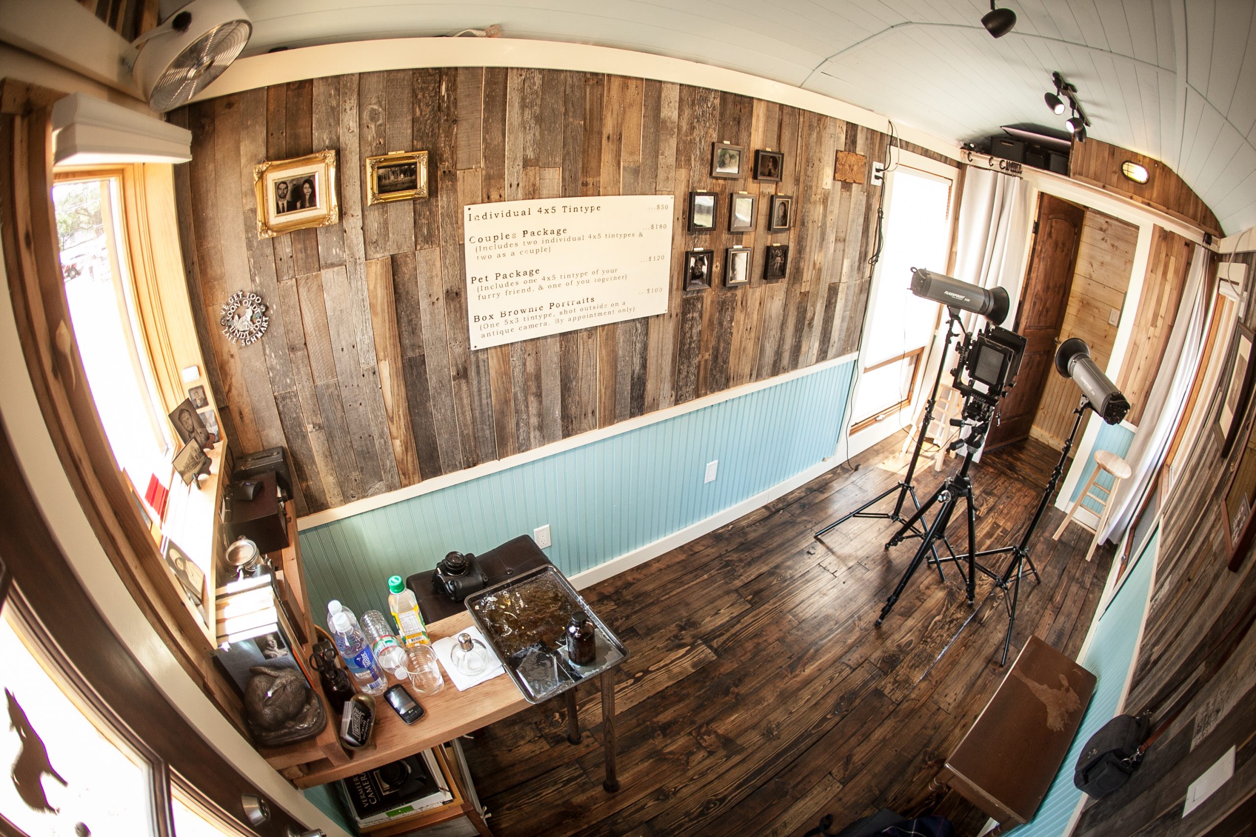 Lumiere Tintype (Adrian Whipp): At the beginning of this process, I thought a lot about how the pioneers of photography democratized portraiture for the masses by pulling horse-drawn wagons around the country and shooting tintypes quickly and cheaply. The life of the itinerant photographer is such a romantic idea; living, working and traveling from something you built yourself and shooting photographs every day. I wanted to bring wetplate out of the studio in order to show it to people who have no idea that it still exists. People who are not photographers walk through our door and get such a kick out of the experience. They lament that they don’t hang photos on the wall any more, as well as the fact that most of us are just a lost phone or failed hard drive away from losing everything. It’s a great feeling to hand someone a tintype that will outlive their grandchildren.