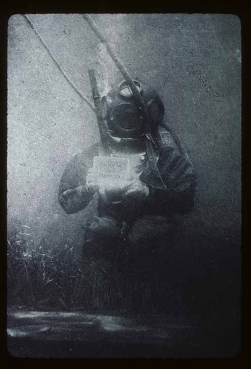 The image above is known as the world’s first underwater photograph – it is said that the model was so excited that he held the identification plate upside down! It was made in 1893 by the French zoologist Louis Boutan by using a magnesium flash.